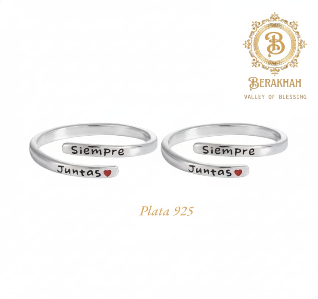 El "Pack de Anillos Siempre Juntas" incluye dos delicados anillos grabados con la frase “Siempre Juntas”, diseñados para recordarle a tu persona favorita lo importante que es para ti, cada día. Esta joya representa un lazo irrompible entre madre e hija, hermanas o amigas, y celebra el amor que permanece firme sin importar las circunstancias.